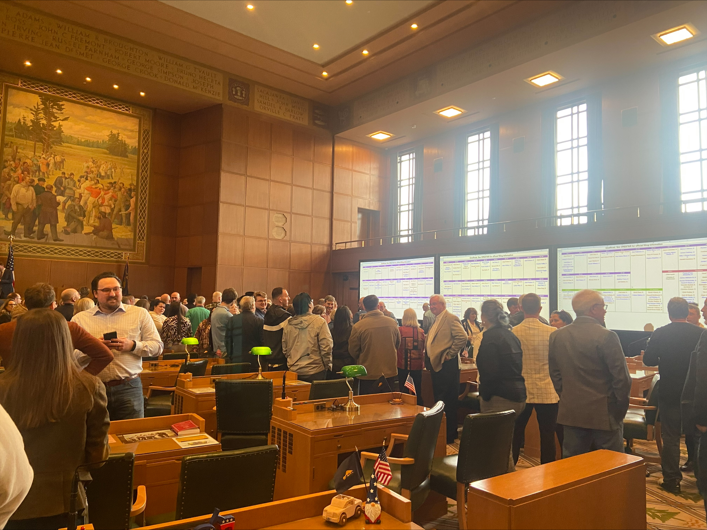 In Oregon, “candidate filing day” was held on Tuesday, March 10th just a few days after the conclusion of the 2026 legislative session. This is the deadline for candidates to file for office to get on the ballot for the May primary election. Everyone gathers on the House floor to watch the names appear throughout the day and at 5:00 pm, the Secretary of State gavels the closing of the official day.