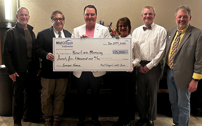 Mid Oregon Credit Union donated $75,000 to New Each Morning, funding one full year of operating expenses for The Juniper House, a new, transitional, sober living home empowering women who are graduates of alcohol and drug treatment programs.